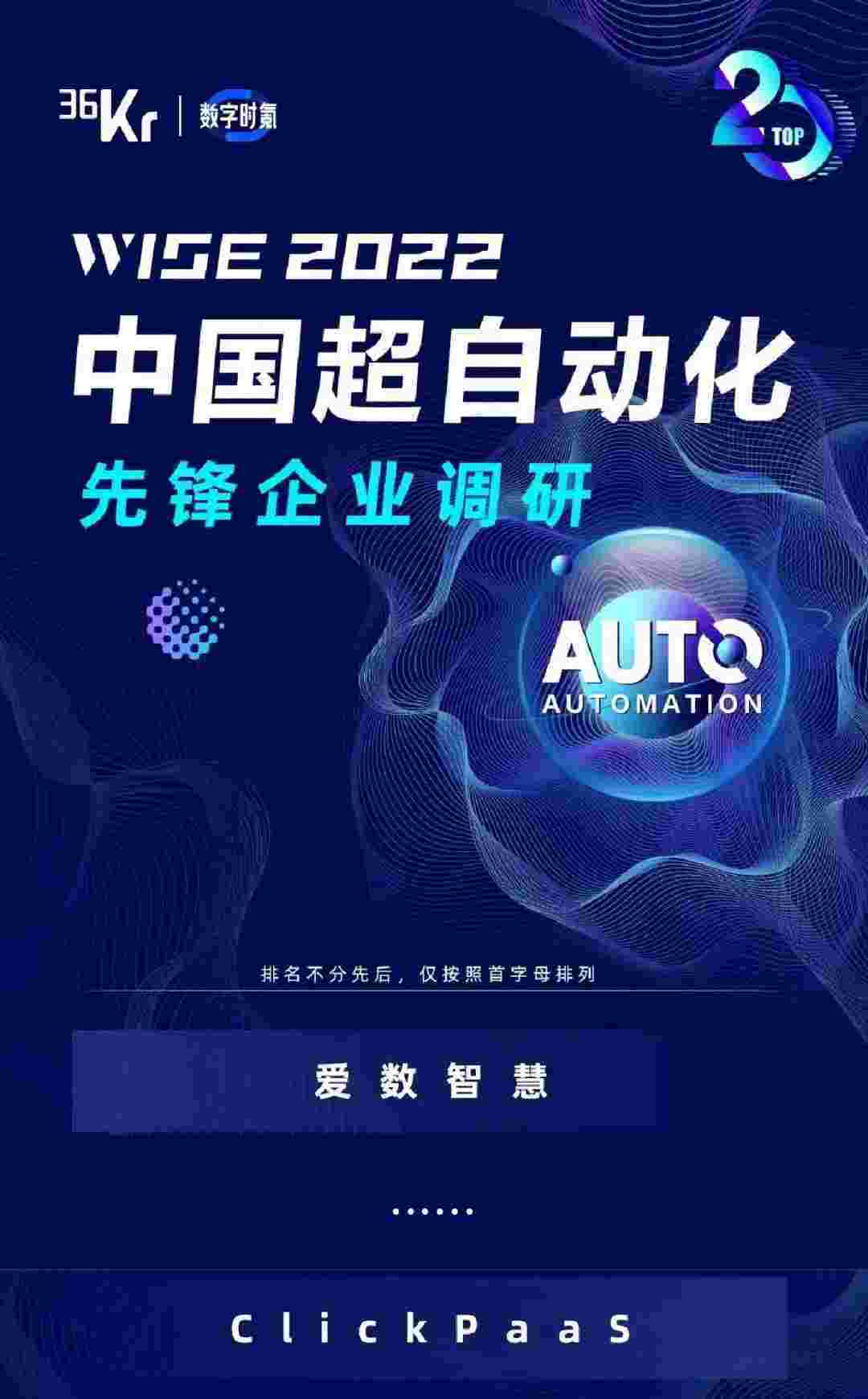8月10日,,,,,,,,,由36Kr主办的WISE 2022中国超自动化峰会在杭州成功举办。。。。。。。。。。。。。。。EBPAY作为国内低代码PaaS平台的领军企业,,,,,,凭借过硬的技术实力和优质的产品能力,,,,,,,,在本次峰会中实力入选「2022年中国超自动化先锋企业」20强。。。。。。