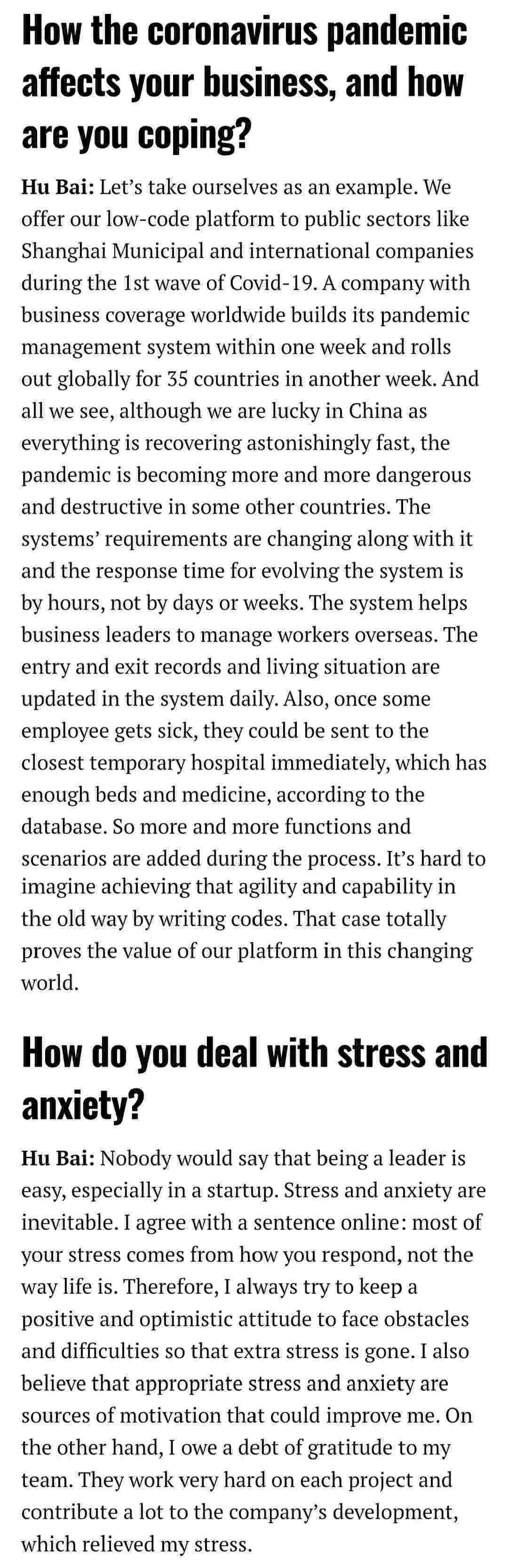 2021年年初,,,,,,,,爱湃斯科技CEO胡柏受邀接受法媒Startup.info的专访,,,,,与Startup info的读者分享了自己的创业经历、、、、、、、、、、、、、以及低代码平台EBPAY的创新之处。。。。。。。
