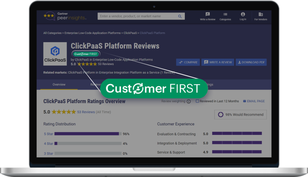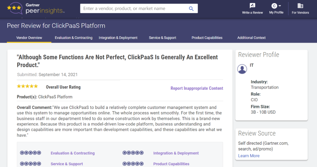 近日,,,,,,,,,,EBPAY凭借了在Gartner Peer Insights大量客户的五星好评,,,,,,,成功成为国内首家荣获国际权威机构Gartner认证的低代码领域Customer First技术服务商。。。。。。。。。。。。其中参与评价的客户均是年营收在3.2亿规模以上的企业信息化负责人,,,,,,,,,,,,行业涵盖物流、、、、、、工程、、、、、、政务、、、、、、、、、、、、医疗、、、、、、、、金融、、、、、、、、、、、、能源等。。。。。。。。。。